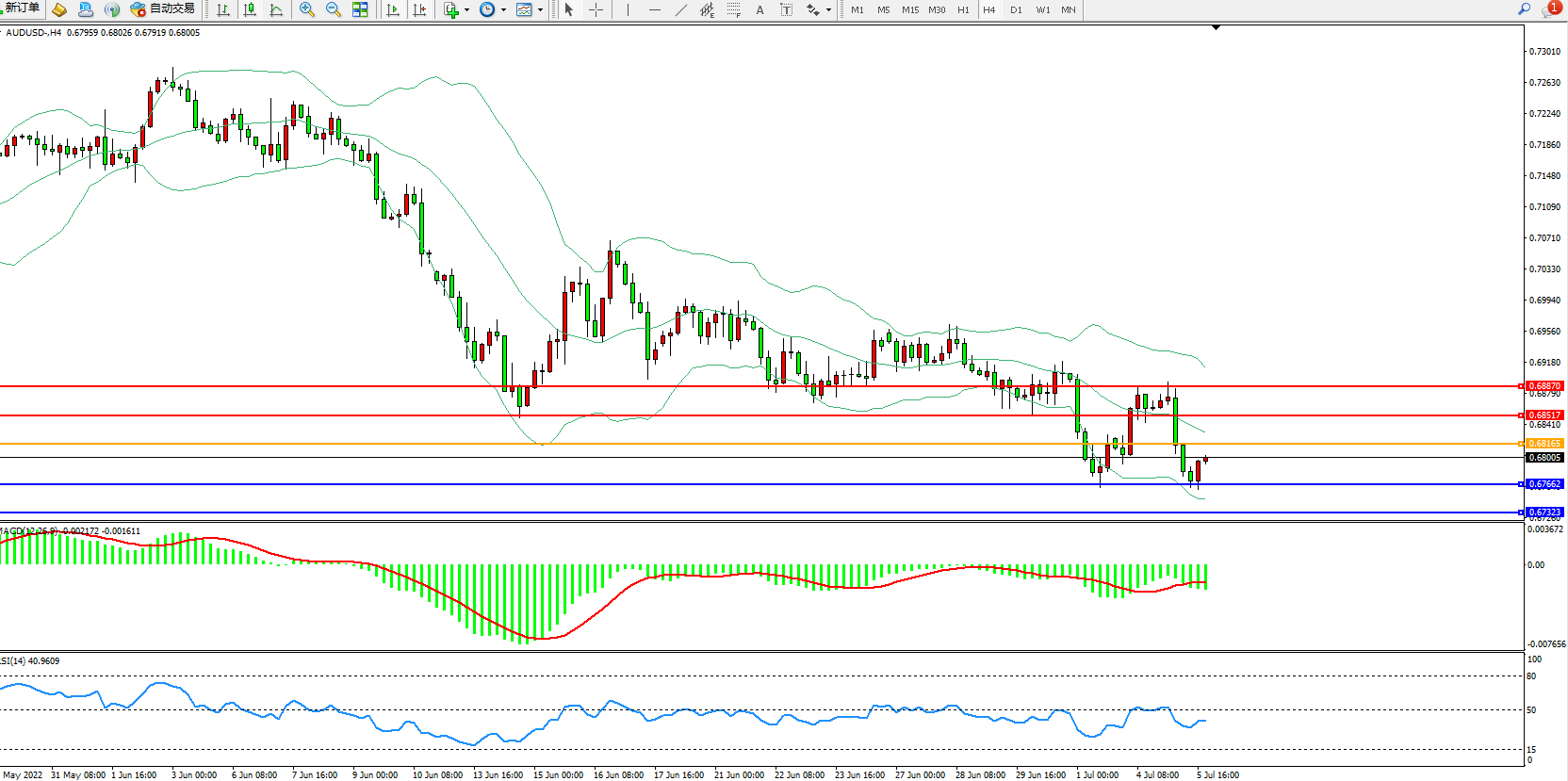 澳元兑美元维持0.68005附近震荡,澳洲联储首次连续加息0.5个百分点,并承诺继续收紧货币政策以遏制通胀加速。5月以来,澳洲联储已将借贷成本提高了125个基点,对澳大利亚债台高筑的消费者带来了压力。