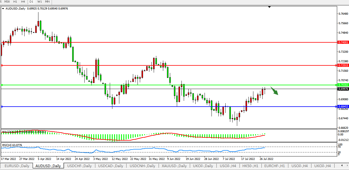 备选策略:0.7030上方看涨,目标0.7200、0.7400