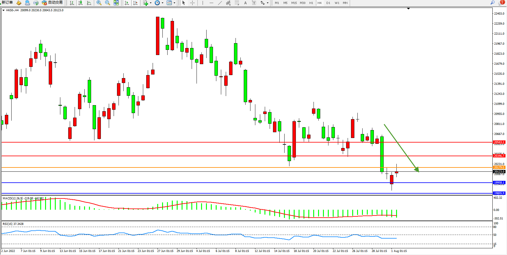 香港恒生指数8月1日(周一)收盘上涨9.33点,涨幅0.05%,报20165.84点;港股上午盘低开高走,盘中三大指数均转涨,市场较上周大跌行情止跌明显。国指、恒生科技指数跌0.13%及0.17%。大型科技股涨跌各异,美团涨超2%,百度涨1.4%,京东、快手小幅上涨,阿里巴巴跌近4%,腾讯、小米走低;内房股与物管股再度下挫,电力股、军工股、药品股、海运股普遍萎靡。