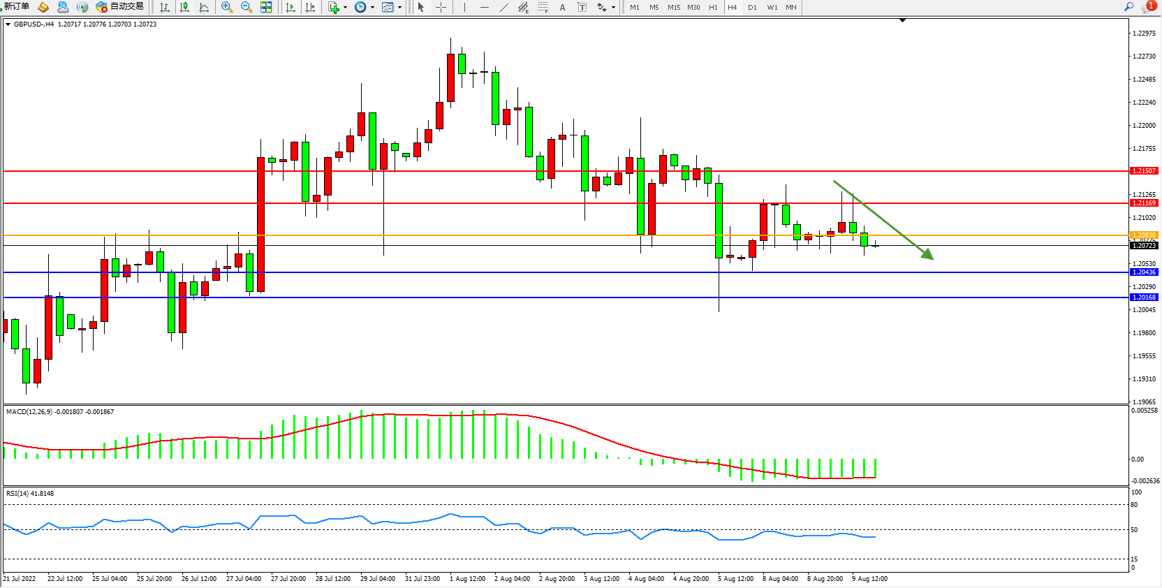 镑美:空头弱势震荡下行