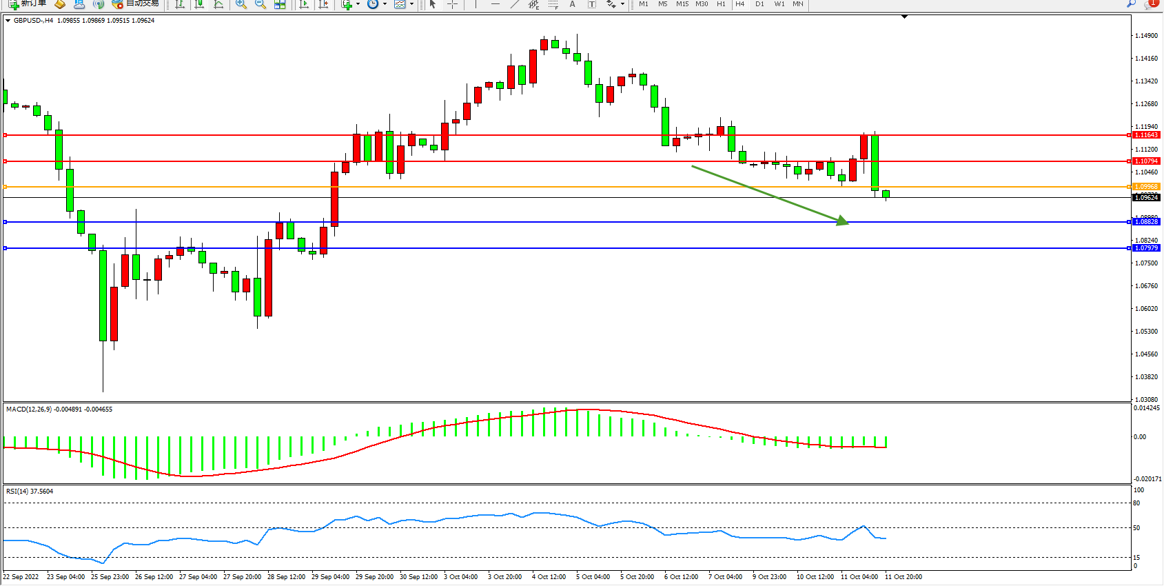交易策略:1.09968下方看跌,目标1.08828、1.07979