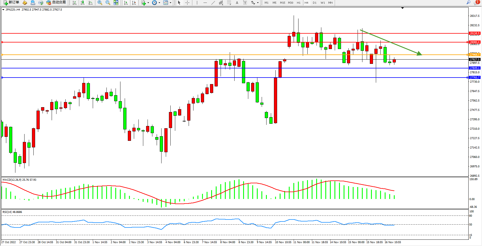 日经225指数11月16日(周三)收盘上涨45.33点,涨幅0.16%,报28035.50点。日本9月核心机械订单较上月下降4.6%。核心机械订单被视为未来六到九个月资本支出的领先指标,数据波动较大。市场调查预估中值为增长0.7%。8月份核心机械订单下降了5.8%。
