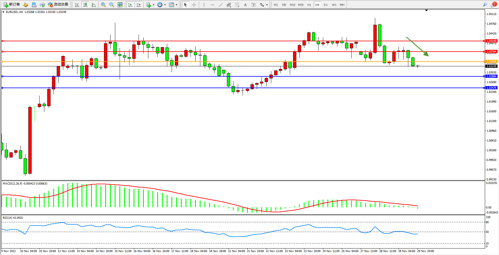 欧元兑美元维持1.03249附近震荡,欧元区经济信心的轻微改善,以及冬季来临前的一个可喜进展。通胀压力放缓确实有所帮助,如果在未来几个月确实观察到温和的天气,这将有助于提高乐观情绪。即便如此,经济前景仍充满挑战,衰退风险仍在继续积聚。