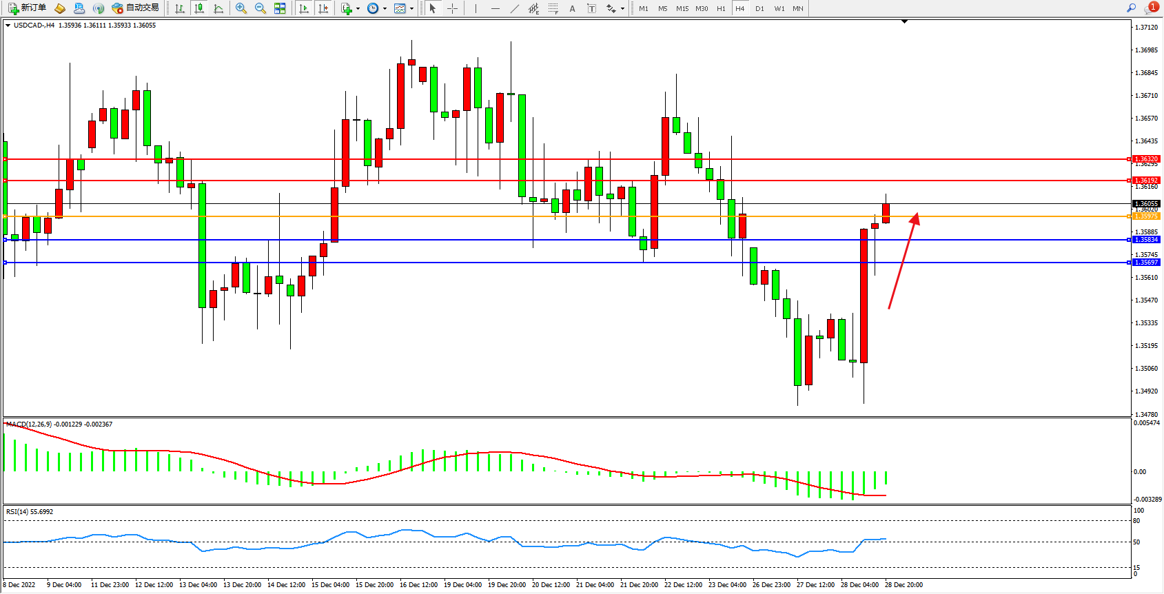 美元兑加元维持1.36053附近震荡,加拿大至12月23日全国经济信心指数 45.3,前值45。