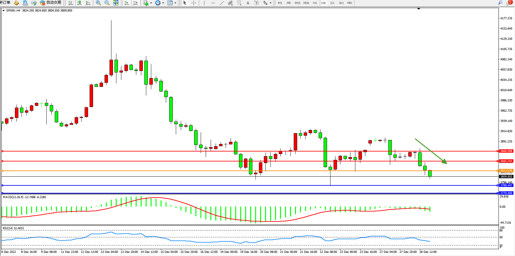 标普500指数12月28日(周三)收盘下跌46.85点,跌幅1.22%,报3782.40点;经济合作与发展组织(OECD)和国际货币基金组织(IMF)预计,通货膨胀(目前处于40年高点)和中央银行以更高的利率来控制它,将导致全球增长速度在2023年放缓至2.2%,低于之前估计的2.8%。大多数经合组织主要经济体的综合领先指标最近下滑,支持了这一前景。