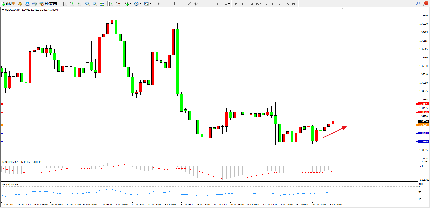 4小时图看:低位短期维持窄幅震荡,市场多头动力有缓慢整理向上移动继续,MACD指标处于空头区域整理后有上移迹象,RSI指标处于50均衡线附近徘徊;