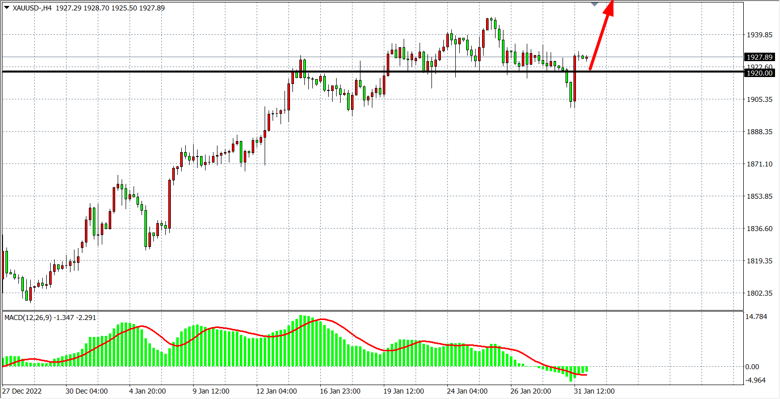 现货黄金XAUUSD    4小时图