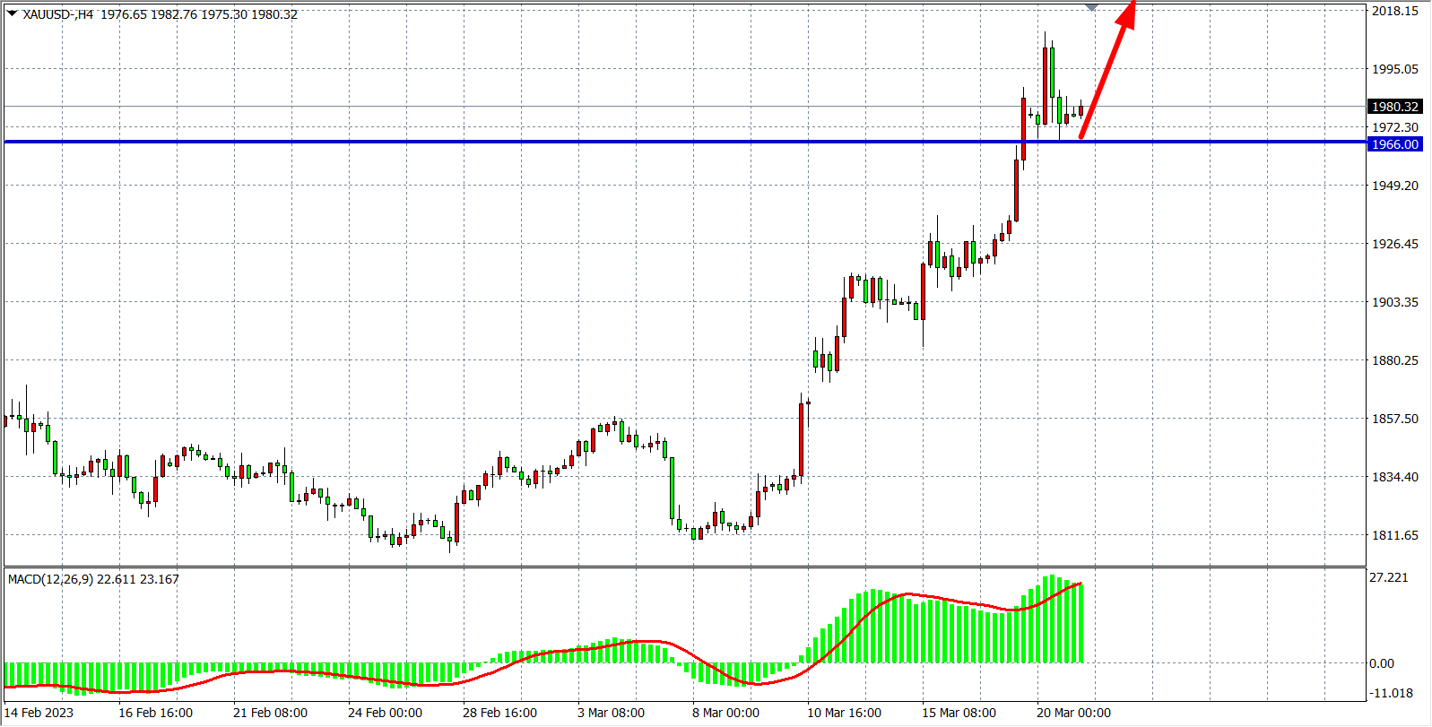 现货黄金XAUUSD四小时图