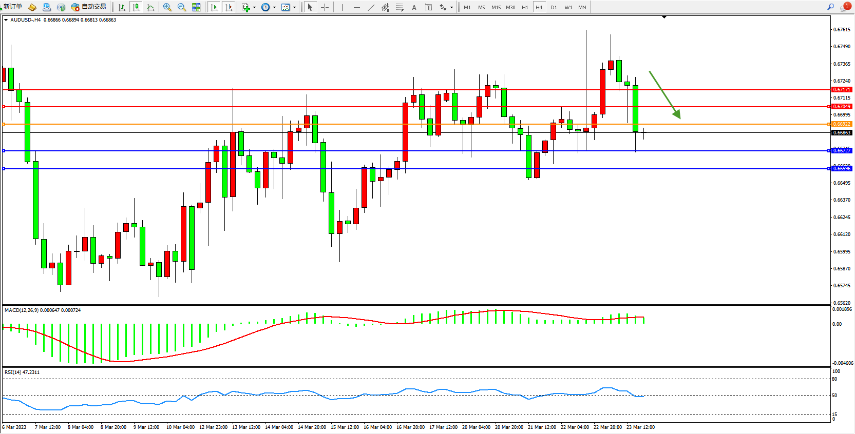 交易策略:0.66922下方看跌,目标0.66727  0.66896