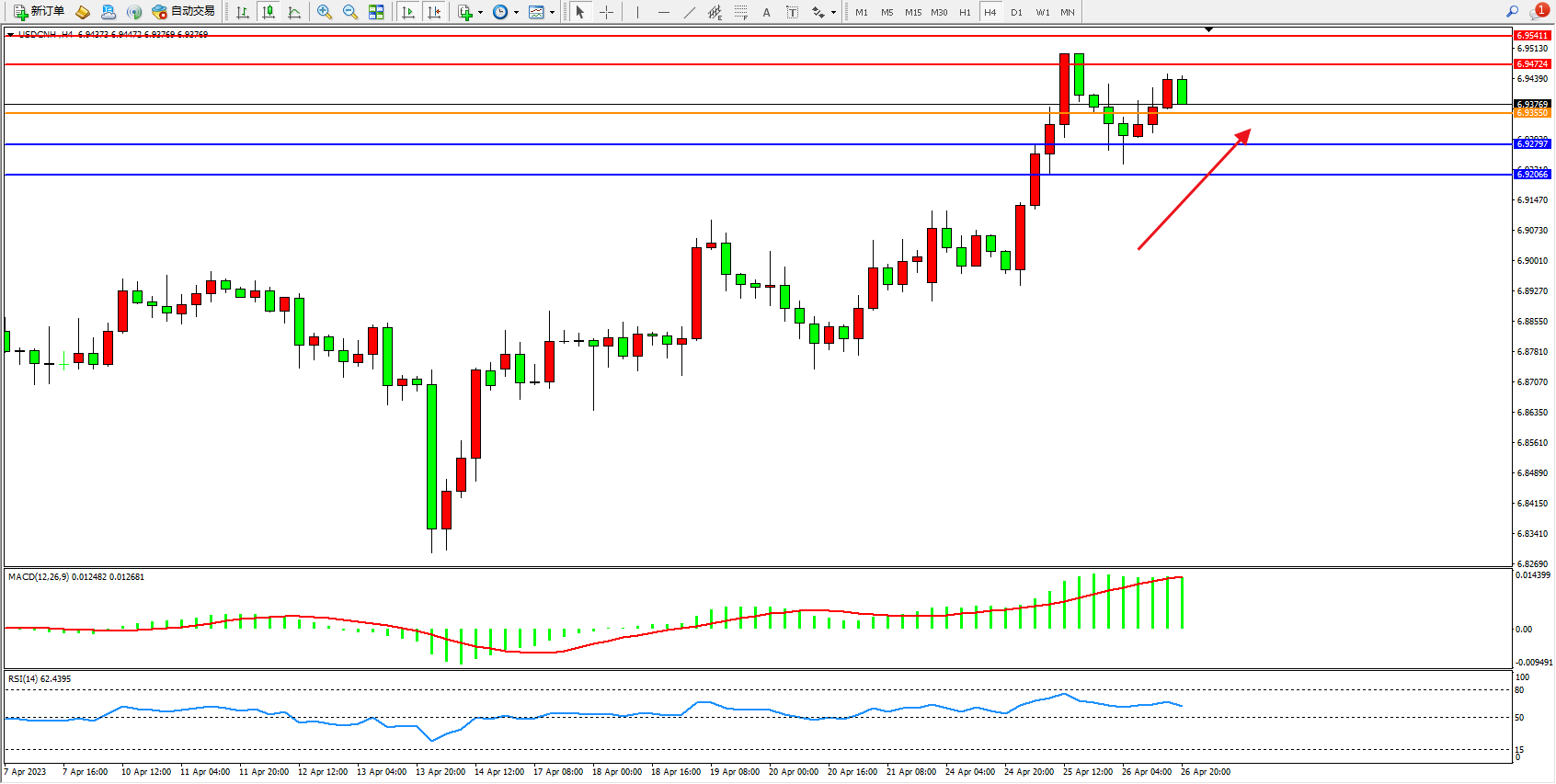 交易策略:6.93550下方看跌,目标6.92797 6.92066