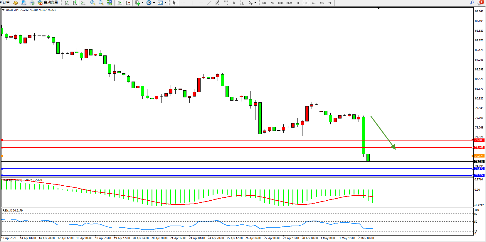 4小时图看:空头动力低位急速下挫,短期跌势或将延续,市场整体处于空头趋势中,MACD指标处于空头区域持续下移,RSI指标处于空头区域低位整理;