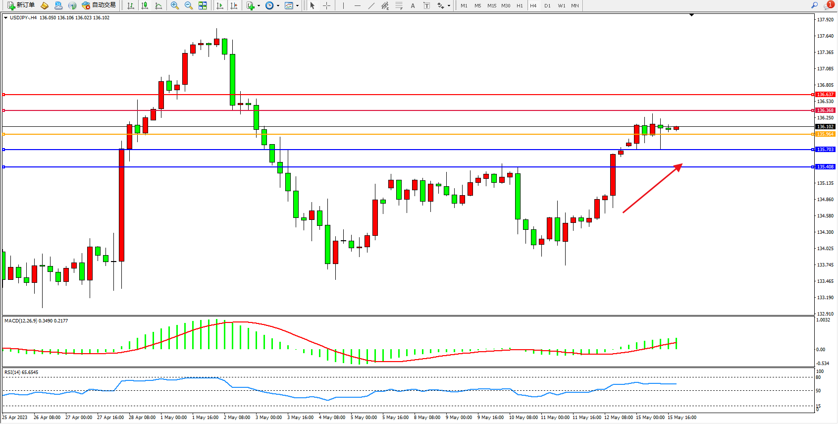 4小时图看:多头动力维持震荡上扬后整理,短期看涨情绪依旧,市场多头动力开始走软,MACD指标处于多头区域缓慢上行,RSI指标处于多头区域维持整理;