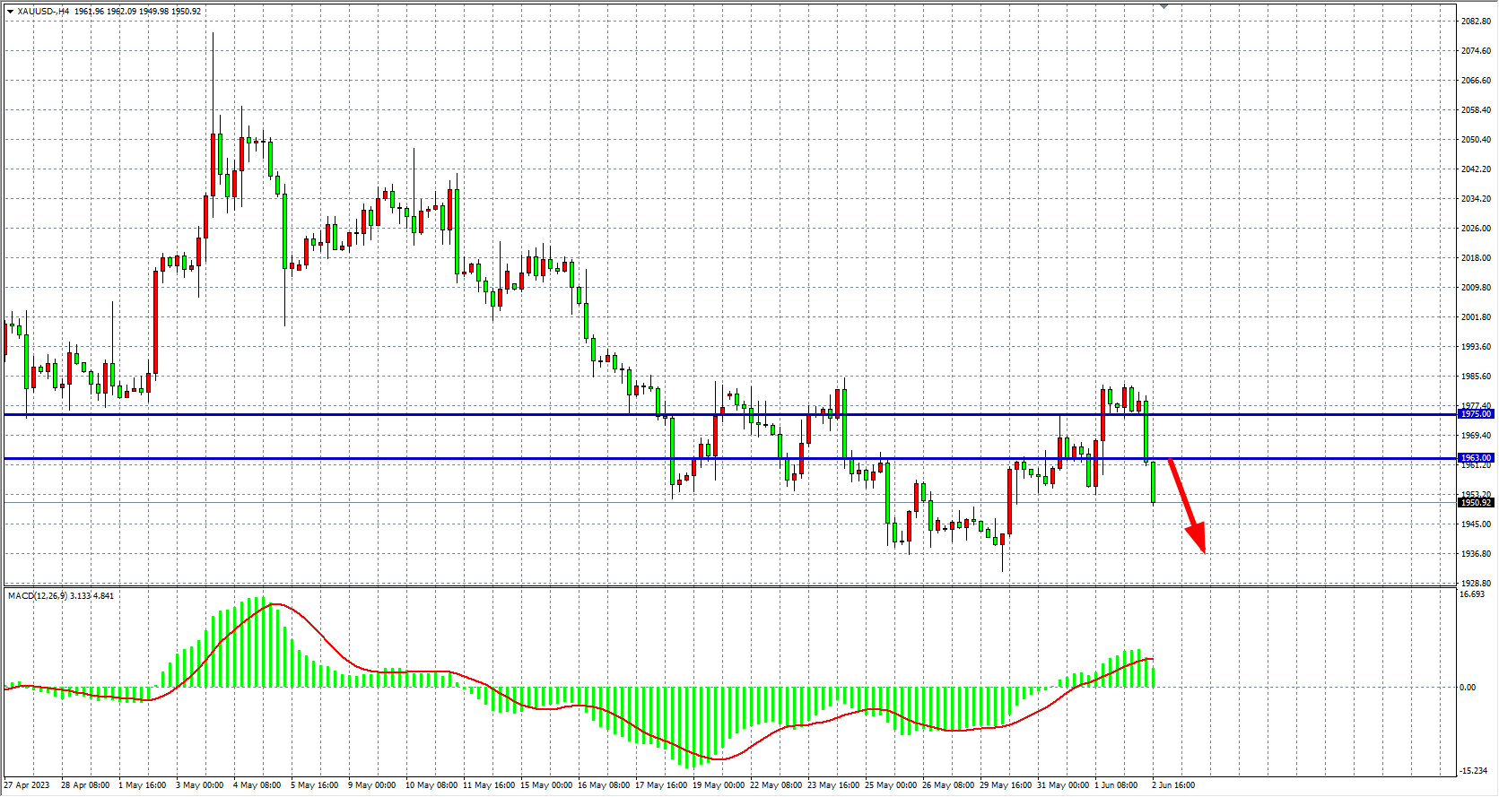 周五(6月2日)美国5月新增非农远远高于预期,黄金持续下挫