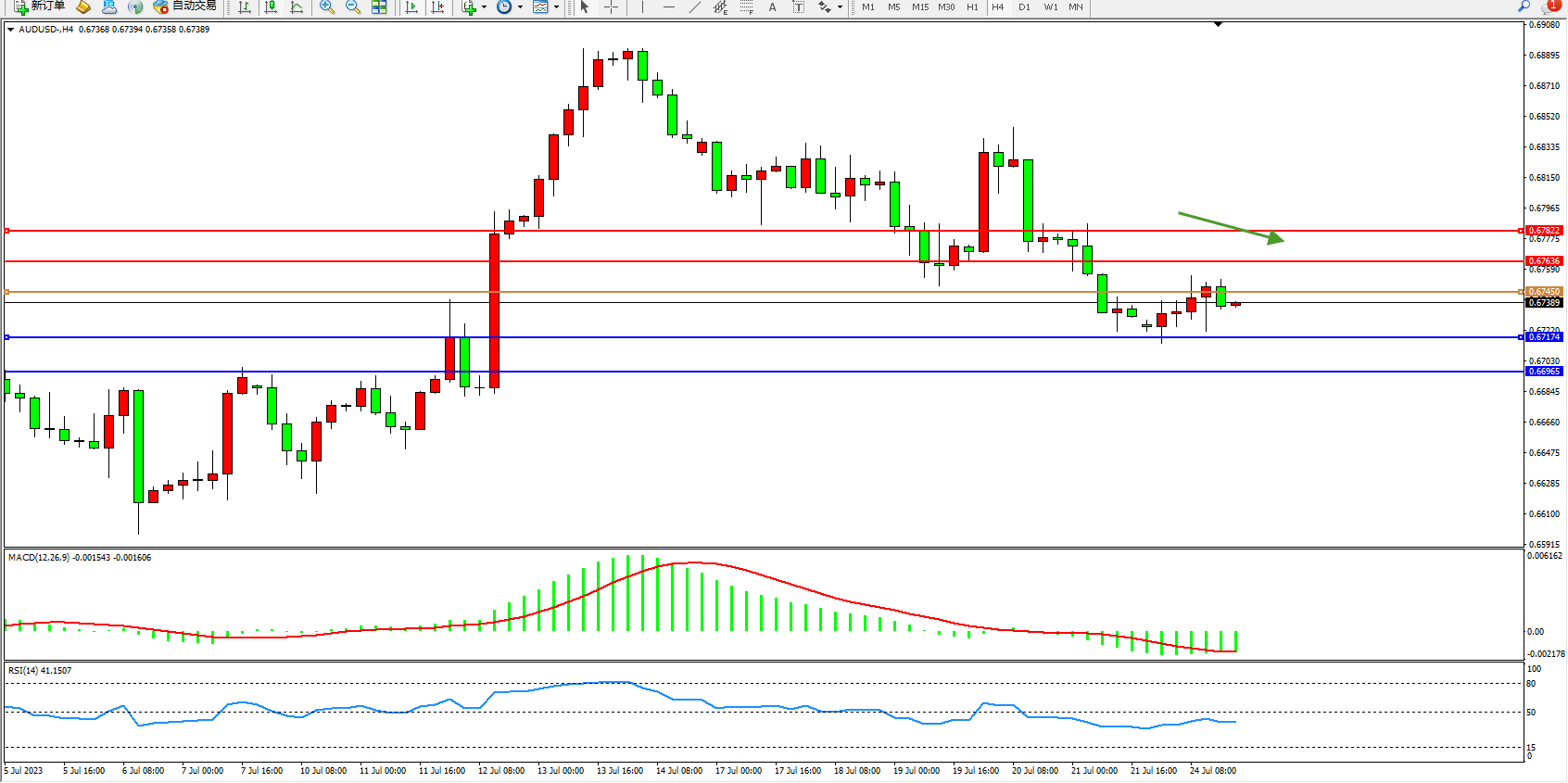 阻力位:0.67636  0.67822
