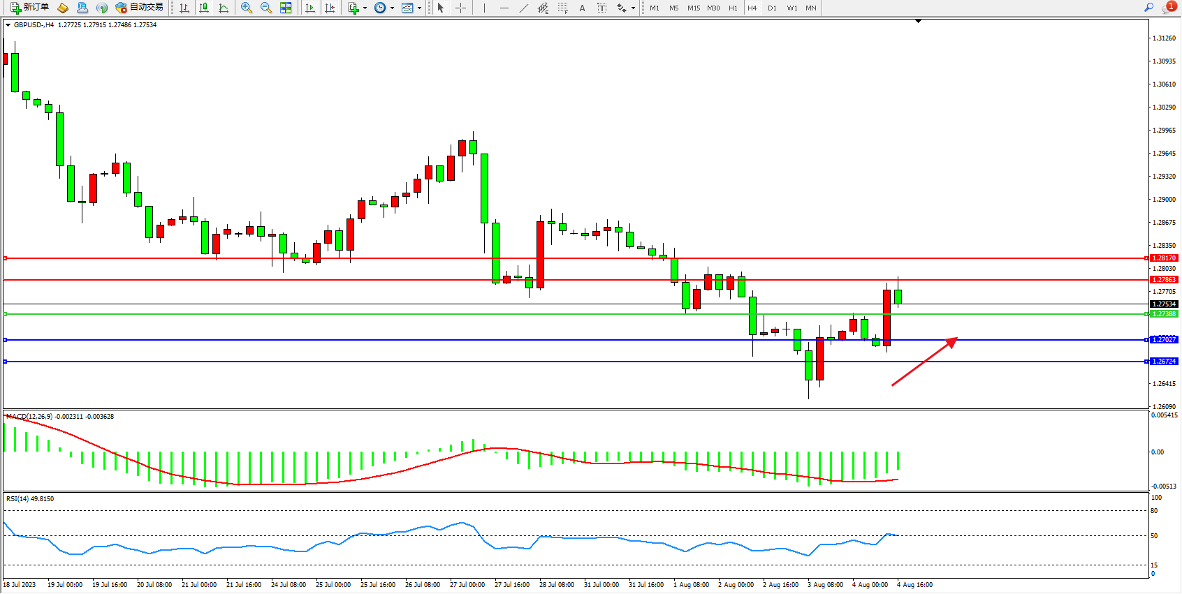 交易策略:1.27388上方看涨,目标1.27863 1.28170