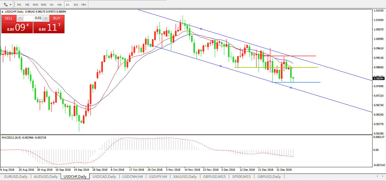 美元兑瑞郎USDCHF日线图