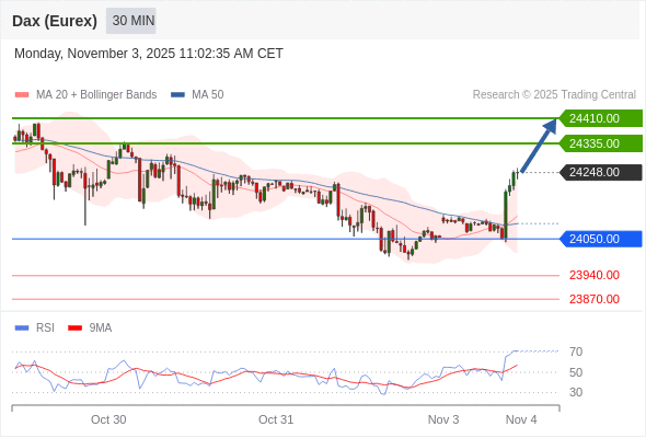 在 24050.00 之上,看涨,目标价位为 24335.00 ,然后为 24410.00 。