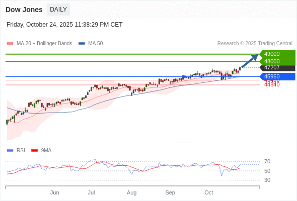 在 45960 之上,看涨,目标价位为 48000 ,然后为 49000 。