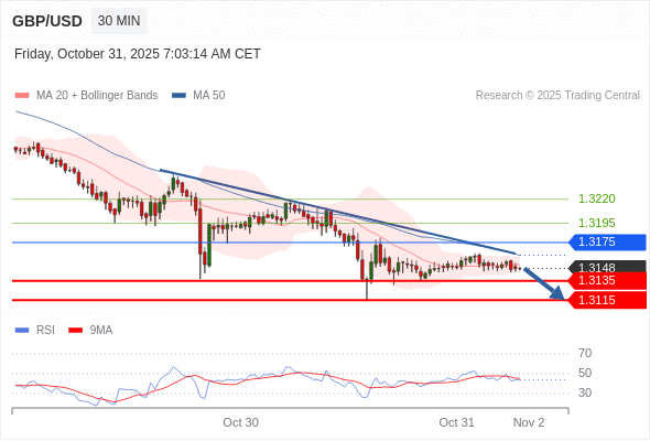 在 1.3175 之下,看跌,目标价位为 1.3135 ,然后为 1.3115 。