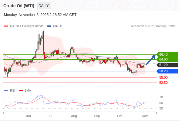 在 58.20 之上,看涨,目标价位为 64.00 ,然后为 66.40 。