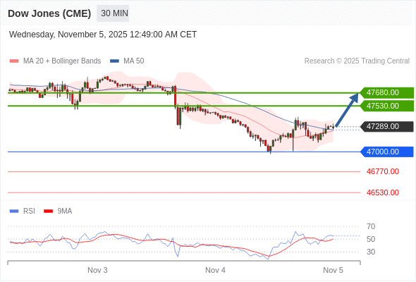 在 47000.00 之上,看涨,目标价位为 47530.00 ,然后为 47680.00 。