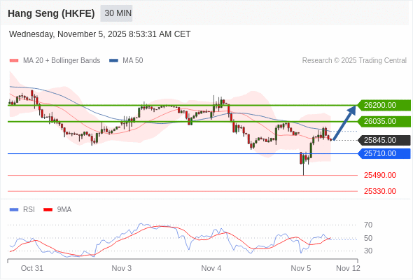 交易策略: 在 25710.00 之上,看涨,目标价位为 26035.00 ,然后为 26200.00 。