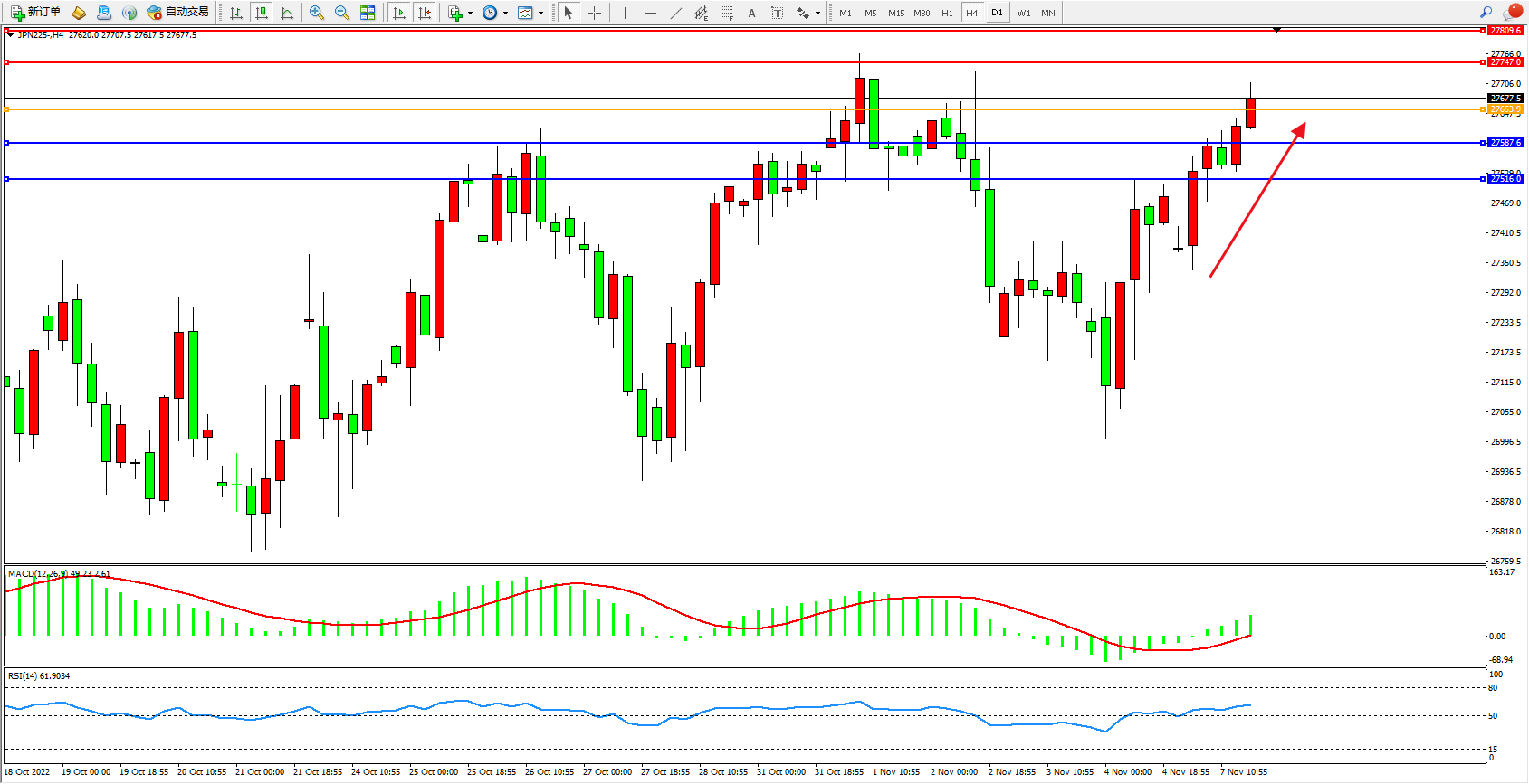日经225指数11月7日(周一)收盘上涨326.26点,涨幅1.20%,报27526.00点。日本会计检查院发布2021年度决算检查报告,三个财年期间,原计划用于疫情方面的预算总额为944920亿日元,实际支出为764921亿日元,执行率为80.9%。