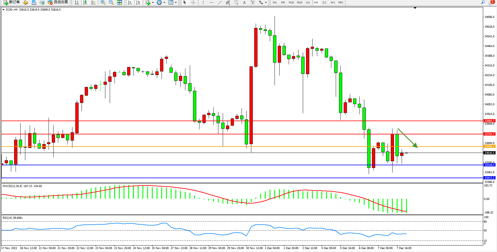 道琼斯指数12月7日(周三)收盘上涨0.53点,涨幅0.00%,报33596.87点;随着市场意识到美联储可能不得不在更长的时间内维持较高的利率,给市场带来了更大的下行压力。从大局来看,美联储的加息幅度已经达到了市场预期的水平,货币政策的限制性足以导致轻度衰退。