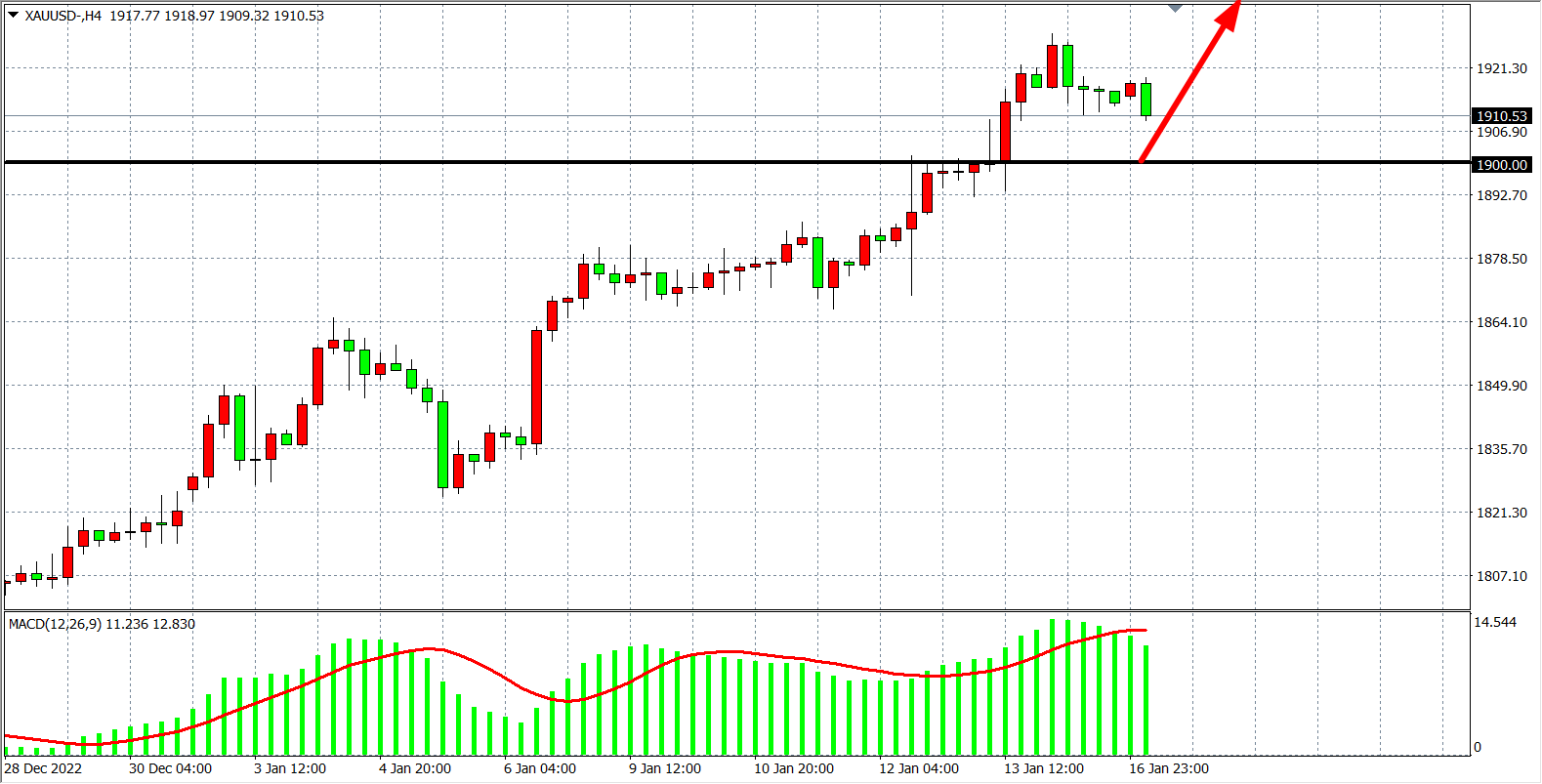交易策略:在1900.00 之上看涨,目标1920.00 1930.00