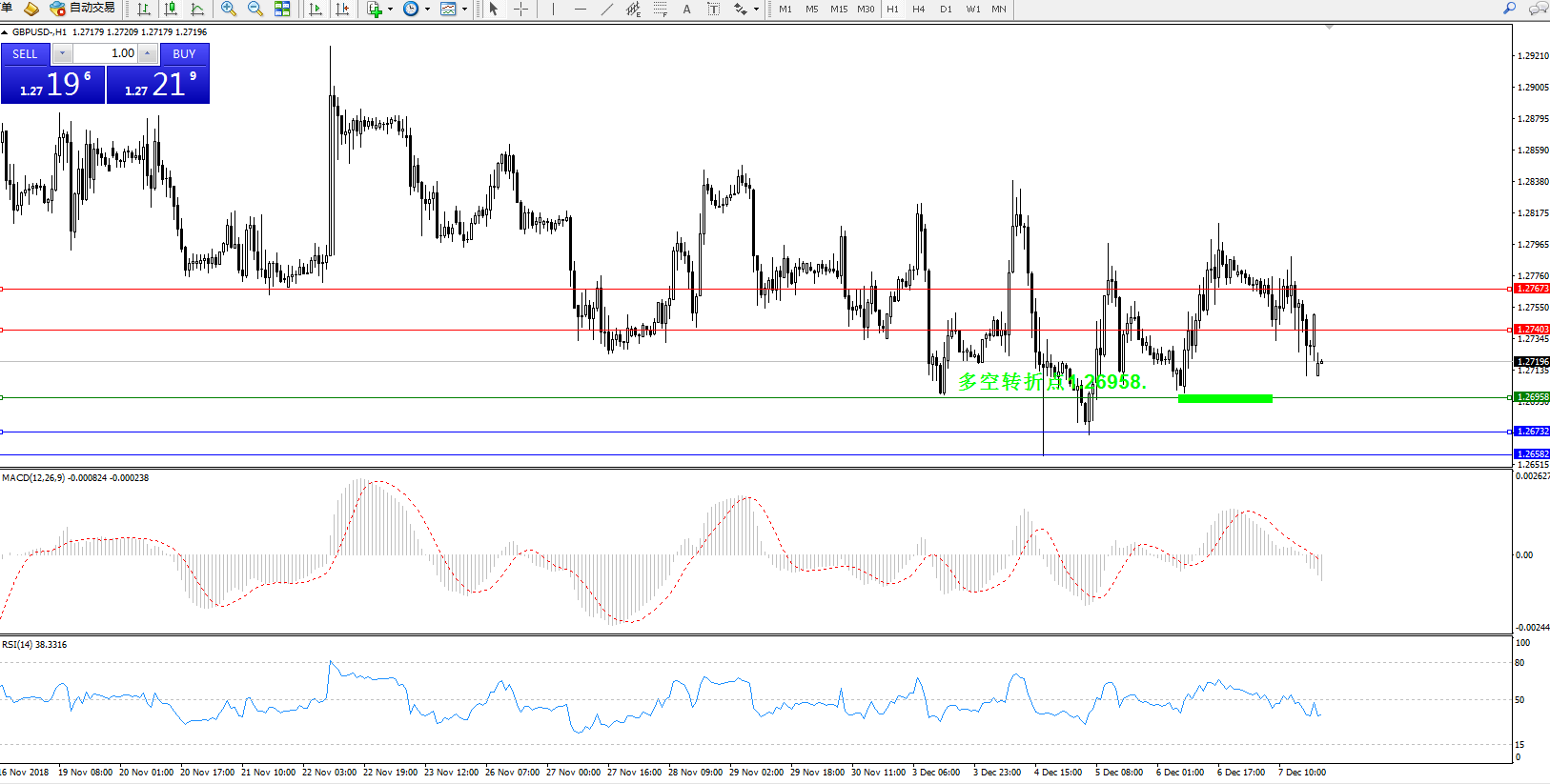 交易策略:1.26958上方看涨,目标1.27403、1.27673